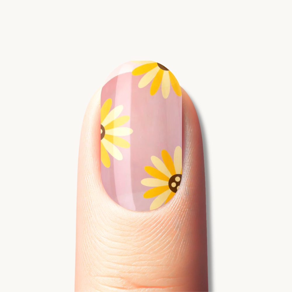 Helian es una celebración floral y soleada, ideal para darle a tu estilo una dosis de frescura y alegría. Sus margaritas de color amarillo brillante sobre un fondo rosa transparente evocan la dulzura de los días primaverales y la despreocupada sencillez de los momentos. Una elección perfecta para espíritus alegres y soñadores, y amantes de la naturaleza.