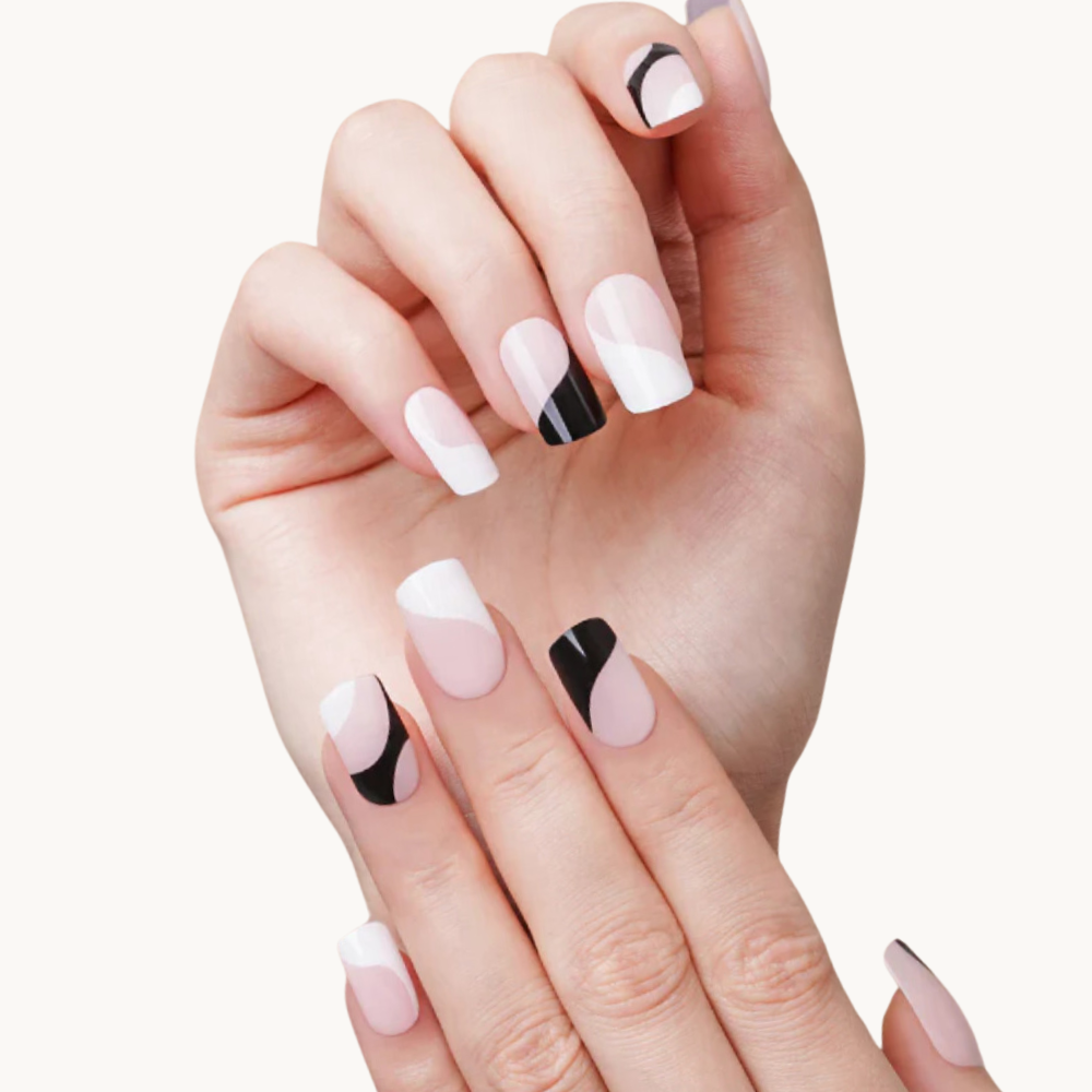 Selina es una interpretación moderna del minimalismo con un llamativo contraste entre el negro intenso y el rosa nude. Su diseño asimétrico crea un sofisticado efecto gráfico, mientras que su acabado brillante añade un toque de refinamiento. Ideal para quienes buscan una manicura audaz y elegante, este modelo se adapta tanto a looks cotidianos como a ocasiones especiales, aportando un toque de elegancia atemporal.