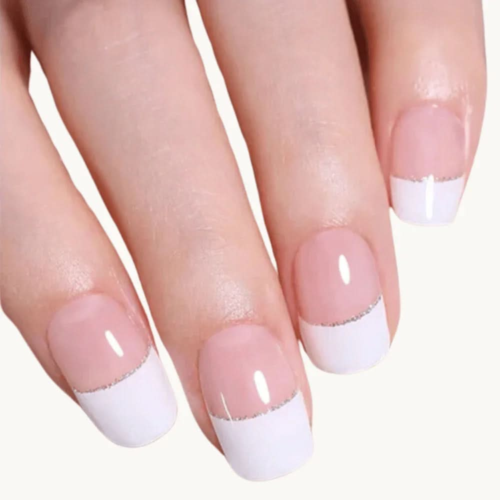 Spencer es una manicura francesa moderna, realzada con una elegante línea brillante. Este sutil detalle añade un toque discreto y refinado de glamour, transformando un clásico en una pieza chic para tus uñas.