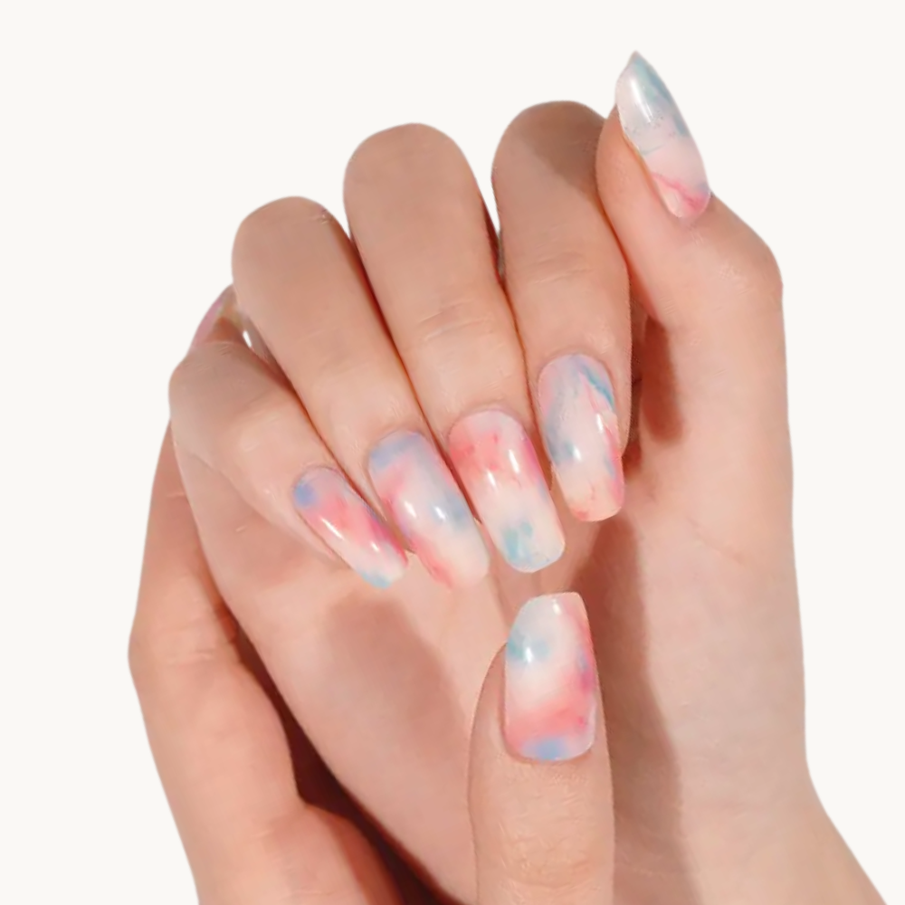 SUKI es una vibrante celebración de energía artística y frescura contemporánea. Sus suaves tonos rosa y azul, delicadamente combinados en un efecto jaspeado, evocan acuarelas de ensueño y cielos pastel. Cada detalle de este diseño captura la esencia de una belleza sutilmente audaz, realzada por un acabado luminoso que ilumina cada movimiento. Ideal para quienes buscan un look fresco, moderno y poético, SUKI convierte las uñas en auténticas obras de arte. Perfecto para un toque de fantasía veraniega o un estilo creativo durante todo el año, encantará a las almas libres y soñadoras.