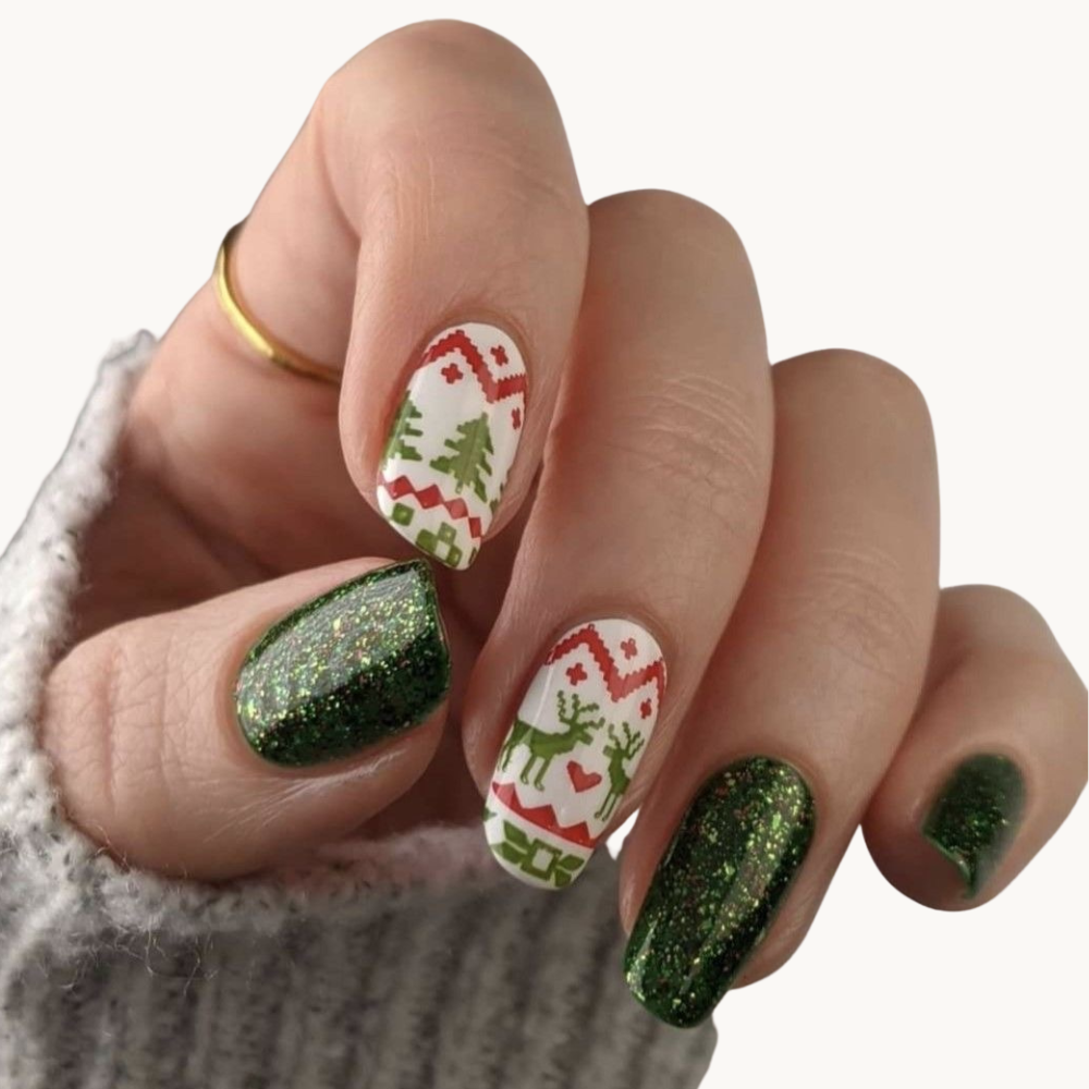 The Saphira model is a soft white and luminous color, sublimated by discreet festive motifs in red and green that recall the Christmas spirit. This design combines elegance and geometric motifs for a chic look.