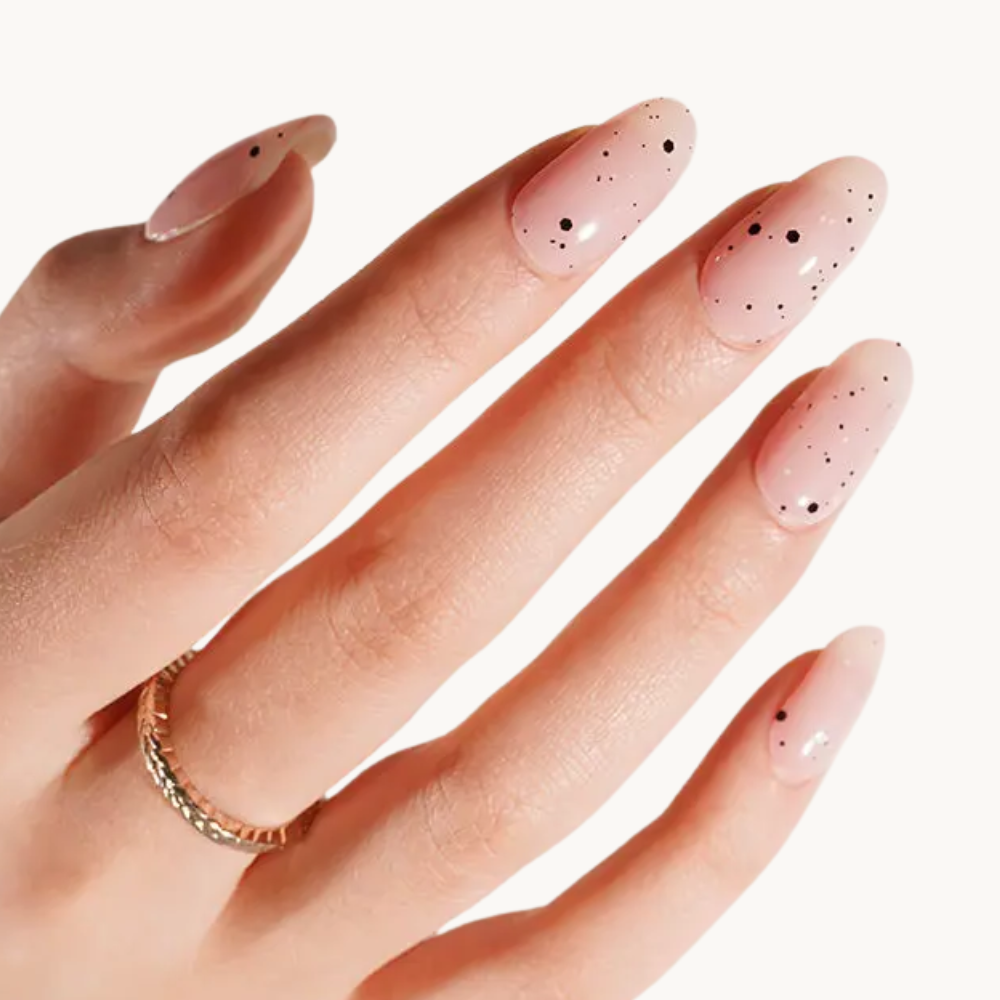 Tara celebrates modern simplicity with an artistic touch. Its delicate nude pink background, sprinkled with small black splashes, evokes the elegance of minimalist design combined with an abstract aesthetic. Every detail creates a unique effect, reminiscent of contemporary canvases or patterns inspired by artisanal ceramics.