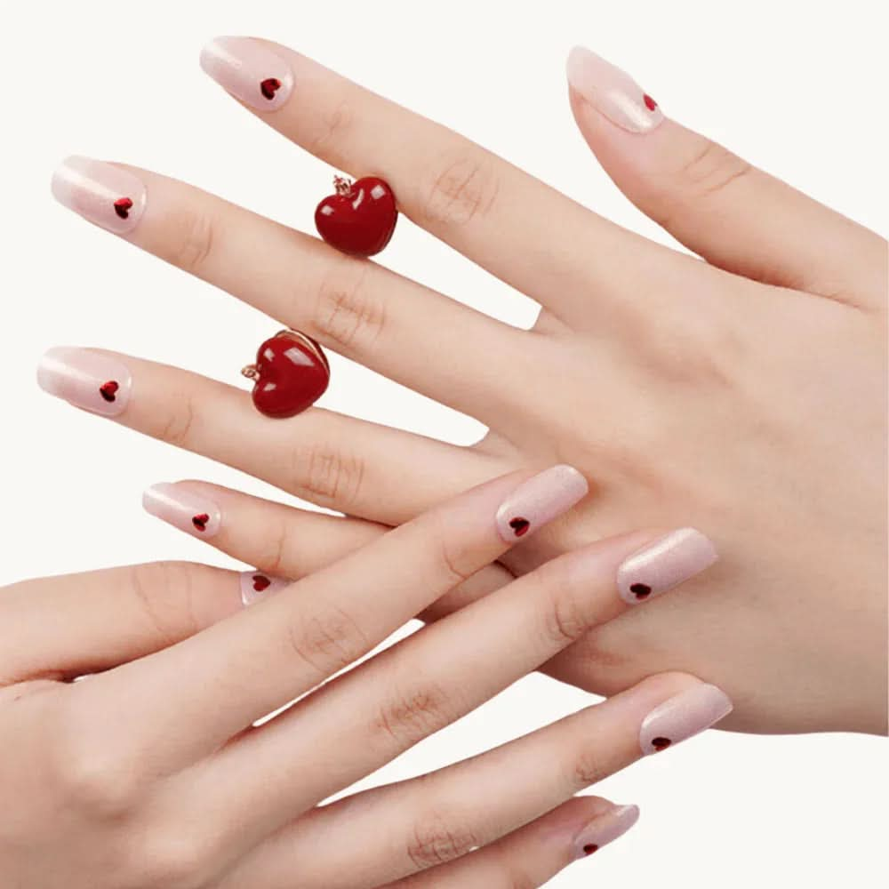 The Alison shade is a soft and subtly rosy hue, adorned with a small red heart at the base of the nail. This delicate design brings a romantic and elegant touch to your hands, perfect for expressing your sweetness while remaining chic. Ideal for moments when you want to combine simplicity and discreet charm.